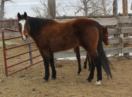 What is her bottom side? We just bought a mare out of a Tolltac daughter. You know how I love my Beduino . Anyhoo, she has a really interesting disposition. She seems to me, like she has been spoiled by people. Almost like she has been harrassed. I played with her for a week and she really came around to liking me. She's not mean, but if you just keep after her and don't relent, she will pin her ears. We haven't had her long, but so far I really like her. She's about 15 hands and super soggy. Here she is in all her winter splender. SHEZA CLASSIC ROYAL F, QUARTER HORSE, 2001