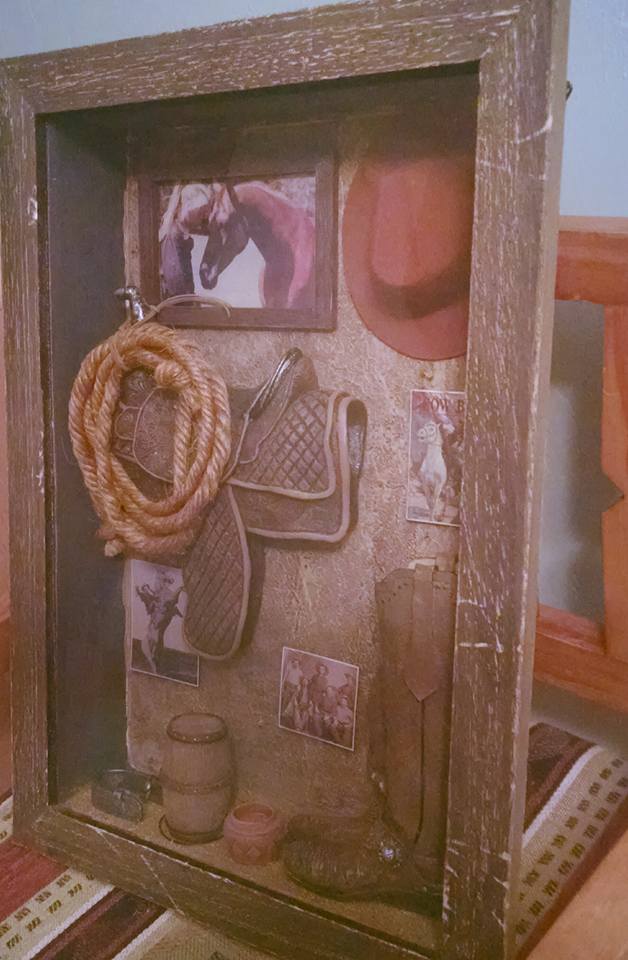 | Made a shadow box with bridle and bit, and alot of other momentos. |