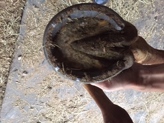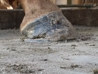| So I need to bring the heel back and create heel expansion to correct the underslung and contracted heel. Do you trim the toe and leave the heels and sole alone? Use a bigger shoe? He has a vet appt tomorrow for some other things and going to have the vet look at the hoof and see if he can recommend anything as well! Thank you all |