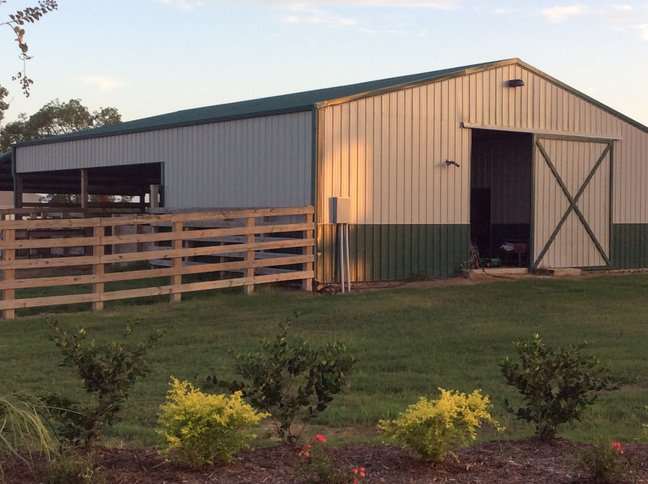 | Nita - 2017-01-05 1:56 PM rodeomom3 - 2017-01-04 7:43 AM Delta Cowgirl - 2017-01-04 6:28 AM Whatever type barn you build, be sure to select a site that is high and do dirt work to build up the site further. Also, install gutters. You want water to drain away quickly and avoid a barn and turn-outs in mud holes..... Put in a walk-out door as well as your big doors - have a barn aisle at least 12 feet wide. And fans - install good barn fans. Discuss ventilation with your builder. Ditto, we put ours on a pad and also have gutters. Have the roof pitch as high as you can and vented to let out the heat. I live in southeast Texas and have an open barn but I am far enough off the coast that hurricanes are not a concern for me. Open barn? Like a shed row style barn? How do you like it? I know open style barns are better for air flow, but I dislike almost everything else about them. (Wind-blown rain, cold in the winter with no way to really get in out of the weather, etc. ) Also, do you prefer the open style because of things you disliked about other barns you've had? Both of my barns have been open barns-LOVE THEM. It is not like a shed row barn. It is a regular barn with a center alley. The front part of the barn it's all enclosed, on one side of the alley is a 15 by 10 feed room next to a 15 x 10 hay storage, directly across from that is a 20 x 20 storage room with a big door. Step down into the alley where there are 4 stalls - two 15 x 15 stalls on each side of the alleyway. There are no sidewalls -I extended an overhang down to 9 feet. There is a 20' overhang on the south side of the barn that blocks rain from blowing into the end stalls. The stalls always have a breeze and are not stifling in the summer.