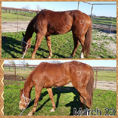 Location: Here | rachellyn80 - 2015-04-28 4:21 PM SG. - 2015-04-28 4:06 PM rachellyn80 - 2015-04-28 3:25 PM I'm learning more about all of this every day. I have made some amazing contacts that have had my poor mind spinning with questions and discussions on nutrition and toxicology. Most recently we have been focusing on a specific plan with our horses to see if we will be able to rehab them to their former condition. We are seeing great results with the Bluebonnet feed, supplements, and mineral. I know that it's not available in all areas, but this feed has shown me beyond a doubt that a more expensive feed can be fed cheaper than a lesser quality/less expensive feed. Don't get me wrong...it's been VERY expensive to run this little experiment, but the results have been well worth it. If you feed most cheaper feeds by the recommendation it ends up costing just as much as the Bluebonnet feed...and then nearly everyone on this board is buying $$$$ in supplements. The Bluebonnet Omega Force needs nothing other than a free choice mineral and good quality forage to keep one looking great.