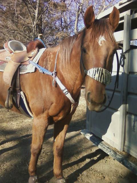 Location: Kansas | Just want to offer an update on Streak after a week in my herd. I took him with Chance & Cliff to Matt's for the weekend on Saturday morning. Rode him up there with Matt and his Joker, survived and won the battle of "I wanna go back to my friends," then took him with us to a barrel race Sunday. He rode great indoors though he was pretty lazy. We trotted a couple of exhibitions so I could see if he knew anything about barrels and how he would act in the arena alone. Did fine, and I figured out some things he needs to learn before we go back to the pattern so I considered it a success. He got Monday & Tuesday off to be a horse because my work schedule is nuts those days, then I have ridden him the last two days and made improvements both days. When I went out Wednesday to start catching horses, he met me at the gate and laid his head on my chest. I'd say he missed me. :) Wednesday he learned to do 180 degree pivots on his hind end, and yesterday he rode off out into our fescue field without even nickering for the other horses. I don't think he'd ever really been alone so not seeing another horse makes him nervous, but it's improving significantly every ride.