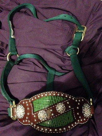 Location: Under The Big Sky Of Texas | Do you know who made this halter? I would really like to know and the prices on them too. And green is my favorite color too  |