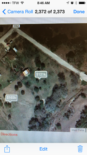 Location: Central Texas | My place is a pie shaped 2.98 acres. Have county road on two sides, the short front and down one side. House sits pretty close to the road with a small front yard. I dedicated most of the land to the horses. I have a circle type drive in the front so I can easily get in and out with any trailer from either direction. Barn is behind the house and kinda in the middle of the property. Each stall has a good size turn out pen and then each pen can be opened up to their own pasture. Round pen behind the barn in the back pasture. When I finish getting all the trees cleared my next project will be the arena which will go between the pastures and next to the barn. ETA..The second picture is actually my place....I don't know how to make it bigger. The multi colored roof is my barn which is 36x36.
