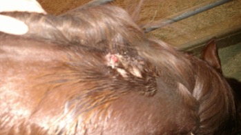 ย So the problem of the month is threadworms. ย Or so I think. ย Horse has had some bald spots and crusty/dandruff-y area under his mane for a couple of weeks with no change. ย In the last three days it's gotten worse. ย I put an aloe-Vera antibiotic salve on it to soothe it on Monday. ย Get there today and there is raw skin exposed. Not just skin, but TISSUE. ย I sprayed with Vetericyn, and braided his mane in a way to let it air out. ย Went home, did some research and I think it might be threadworms. ย He does put his head between panels and itch the top of his mane, as well as under his neck. ย He was really itchy with flaky spots on his butt, but that pretty much stopped once I started putting furazone on it and then eventually the aloe stuff and it finally healed the sores. ย He was last wormed with......whatever kills pinworms (can't remember which brand) in August. ย
