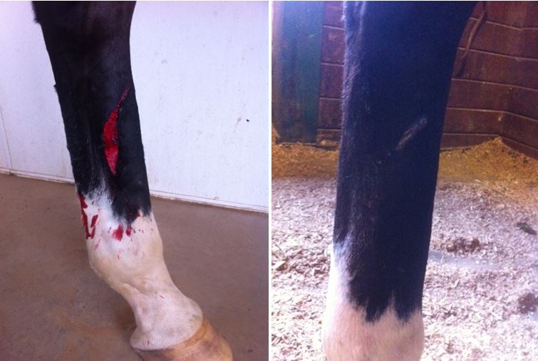 Yes, when and where. My gelding cut his leg on the front of the cannon bone and there isn't even a scar. Pic is the day of, and 2 weeks later. Now you can't see anything there.