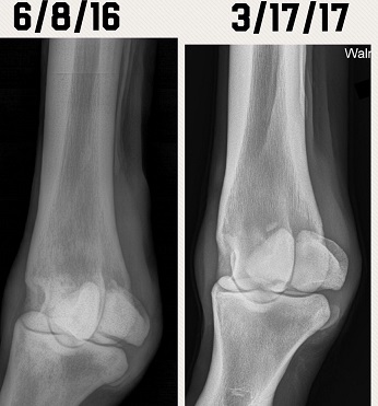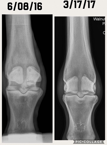 Just wanting to see if anyone had any opinions on these X-rays. Diagnosis was a fractured sesamoid bone. Before and after X-rays in the pics. Do they look any better? Does he have any hope for a barrel future? Anyone experienced this before? Completely sound in the pasture at this time. Has not been put back to work yet. Thanks man advance.